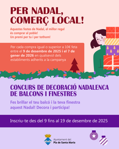 L’Ajuntament del Pla de Santa Maria torna a apostar aquest any per una campanya de Nadal que combina tradició, creativitat i implicació del teixit local a través de dues iniciatives que ja s’han convertit en referents del municipi: el concurs de Comerç Local i el concurs de Balcons i Finestres. Amb...